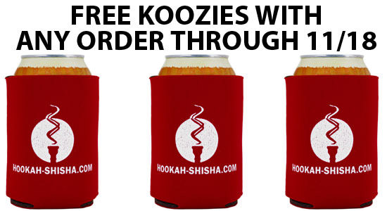 One of my favorite things to do while smoking hookah is to enjoy a refreshing cold beverage. The only problem? Sometimes my hand gets too cold from holding that ice cold beverage. The solution? A koozie, of course! What's that you say? You don't have a koozie? Specifically you don't have a super awesome Hookah-Shisha.com koozie? Well you are in luck my friend because this week we are tossing a free Hookah-Shisha.com koozie in with each and every order placed on our site. Consider it a little bit of Christmas in November with Hookah-Shisha playing the role of Santa.