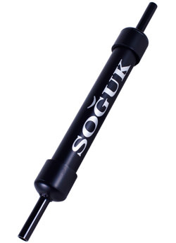 How it works:The Soguk is similar to the Mystique in that it is an attachable cooling accessory, however instead of using water as the cooling agent, a special vegetable-based glycerin solution is sealed inside the device. This solution stays frozen longer than water, allowing the smoke to stay icy cool. This product fits on most hoses with the help of a rubber adapter.